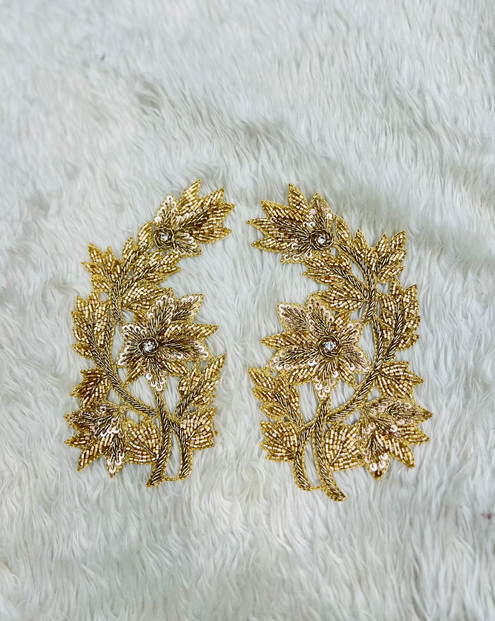DARK GOLD FLORAL ZARDOZI PATCH